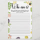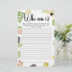 Färsk från marknaden vem är jag? | Roligt Möhippa Icseparer Activity hjälper dina gäster att röra sig och koppla upp sig med vår "Fresh off the Market" Vem är jag Möhippa Game? Den här interaktiva isbrytaren är ett tillskott till perfekten på din jordbruks-, trädgårds- eller rytmhärtiga möhippa. Med våra namnteckning, handdragna produkter och beundransvärda blommigtar med vattenfärg kompletterar det på ett utmärkt sätt ditt färska, naturliga estetiska material. Så här spelar du: Gäster får ett spelkort och ombeds att skriva om sig själva eller sitt förhållande till bruden utan att skriva namn. Korten samlas in, och värden läser varje faktum högt. Gästerna gissa vem som skrev det. Det är ett fantastiskt sätt för gäster att lära sig mer om varandra och hitta kontakter inom gruppen, särskilt när inte alla känner varandra väl. Spelkortet "WHO I" ger gästerna utrymme att skriva sitt anonyma faktum på ett attraktivt tema. Det är en enkel uppgift att konfigurera och ger gästerna en varsam uppmuntran att interagera och lära sig roligt om andra. Samordna detta engagerande spel sömlöst med andra artiklar från vår "Fresh Off the Market"-samling, som inbjudningar, andra spelkort och skyltar, för ett vackert sammanhållet och underhållande evenemangstema. Anpassa enkelt spelkortet genom att lägga till bridens namn, händelsemedatum eller genom att ge en specifik fråga till det faktum att gästerna ska vara (t.ex. "Mitt favoritminne med bruden är.."). Tillgänglig tryckt på förstklassig kartong eller som en praktisk digital nedladdning i hemmet. Klicka på "Anpassa nu" för att anpassa din Fresh off the Market Vem är I Game-kort och lägg till en aning mystiskt och spännande roligt till din möhippa! Vem är i möhippa spel, möhippa isbrytare, friskt marknadsspel, lantbrukares möhippa, rustic bröllop-spel, trädgårdsspel, temaparty-spel, utskrivbara som är i, få reda på dig, roligt-duschspel, blommigt kort
