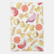Färsk Pasta & Tomatos Mix kökshanddukar har en vattenfärgad illustration av utsökta pastasorter, inklusive Farfalle, Fusilli, Orecchiette, Conchiglie, Penne, som är täckt med mogna tomater och schalottenlök.
