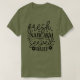 Den här oliv grönt t-shirten innehåller texten "färsk SARCASM serverad DAILY" i ett lekfullt svart teckensnitt. Ord "färsk" och "serverad" står i ett flytande skript, medan "SARCASM" och "DAILY" står i ett djärvare, något nyktert stil. Små stjärnor och blommigtar gör budskapet ännu ljusare och sarkastiskt.