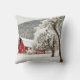 Färsk snö på röd lada kudde