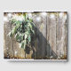 En vacker bild av färsk skuren salvia som torkar mot en rustik lada med julbelysning.