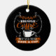 Färskt brunt kaffe som serveras här har en kopp julgransprydnad keramik