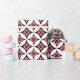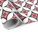 Traditional Japansk shippo, eller "sju skattningar", mönstrad förpackning papper av förreglande cirklar med ett motiv för centralblomman - korall rosa blommor med en svart och vit mönstrad bakgrund