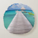 Runda dekorativ kudde med åtskilliga fartyg på en turkoslagun för brygga utom fara av en tropisk ö i franska Polynesia i Stilla havet.
