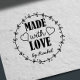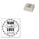 Made with Kärlek Rubber Frimärke - Presentera ett otroligt sött gummi frimärke med en löv-andedräkt som omger budskapet "Made with Kärlek", som dekoreras med två små hjärtan. Frimärke du vill märka dina handgjorda prylar för företag eller som gåvor till dina vänner. Lägg till ditt namn i produkten för att göra den mer personlig och unik. Kolla om vi vill ha fler fantastisk-alternativ i vår båtinsamling och matlagning i frimärke.