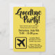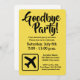 Farväl, att ta bort festinbjudningar. Anpassningsbar inbjudningskort med modern typografi och flygplanets logotyp/internationell reseikon. Överför din egen bild som tillval. färger för Gult och svart eller anpassningsbar. Cute inbjudningskort för överraskning av pension party, middag party, omlokalisering eller insamling innan man lämnar (utomlands) till ett nytt hem. Anpassningsbar text. Ha roligt att fira! Rundade utskärningshörn är valfria. Lämpligt för vuxnor och barn. Perfekt för kollega, medarbetare, lycklig pensionär, resande, teammat, husrum, rumskamrat, kompis, bästa vän, barn, chef, anställd, granne, medarbetare, kontorsarbetare osv.