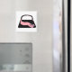 En söt magnet med en snyggt och trendig rosa och svart bärare av bagage. Tre lila blommor accentueras i hörnet.