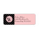 returetiketter för snyggt som utförs i rosa av blek, med text för svart anpassningsbar. En svart med liten rosa polka-punkt mönster dekorerar etikettens lämnat sida, med en rosa rund skiva och ett svart monogram med brev. Anpassa all text på den här modesta adressetiketten, underbar för personlig använda eller företagsinformation.