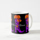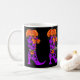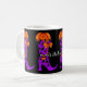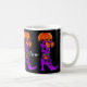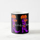 Fashionista Witch mugg. Snyggt häxas snöre med buggar har mala pumpa, måne och löv på ett svart mugg. Lägg till ditt eget meddelande, namn eller initialer.