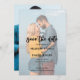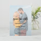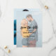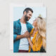 Dubblan sparade datumet med två utfallsbilder från porträtt av lycklig-paret i fullt. Fotot på framsidan har ett genomskinligt överlägg och är handskrivet med "spara datumet" i ett studsskript. Mallen är konfigurerad så att du kan anpassa den med namn, bröllop-datum och all ytterligare information som du vill lämna i det här skedet. Bilden på baksidan av kortet finns i fullt färg utan övertäckning.
