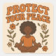 Kanalernas lugn, självförtroende och tydlighet med den här snygga återdesignen. Den här varma, ärliga illustrationen utstrålar inre styrka och läkningsenergi. Den har en serenkvinna i meditation omgiven av blomstrande blommigtar och den egenmäktiga frasen "Skydda din fred".