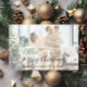 Skicka varmt helgdag önskemål med det här moderna God jul-fotokortet. Utformningen har ett foto som mjukt ramlat in i en gynnsam bakgrund med guld-prydnadsämnen, pinekoner och evergreen grenar, som skapar ett mysigt utseende och elegant. "God jul" är skrivet i snyggtens svarta skript över grund med utrymme under för din familj namn. Ett vackert val för att dela med sig av ditt favoritfamiljeögonblick när du skickar hälsning till vänner och närstående.