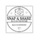 Detta "Fäst och " gummi frimärke har ett runt ram med en kamera och ett meddelande.