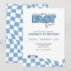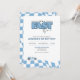 Race Car Birthday Invitation – It's a Fast One - Racing Theme First Birthday Party Invite with Checkered Blue Flag Design