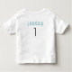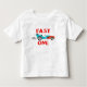 Roligt tävling bilnöjesfjortskjorta med vattenfärg som illustrerar vintage blå bil med rött flammor. Texten på framsidan säger "FAST ONE" och du kan lägga till ditt barns och namn och din ålder på baksidan.