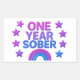 Ett års födelsedag för sober-nyans AA NA-klistermärken I pulverfärgade lila nyp och blyor med skum effekt avslutar regnbåge och stjärndesign