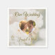 Fästade Vit ros-blommor med Personligt bröllp-foto Pappersservett