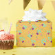 Den här pappra inslagningen och den abstrakta utformningen liknar det klibbiga händer vi alla lekte med som barn. De klibbiga handformgivningarna kan lätt också vara blommor, beroende på vad du anser. I vilket fall som helst är dessa roligtar lila och akvarier, och de ställs in på orangens bakgrund med punkter och uppsättningar rand.