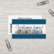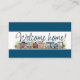 Det här iögonfallande visitkortet är designat för att ge ett minnesvärt första intryck för fastighetsmäklare som vill att deras varumärke ska kännas varmt, välkomnande och tilltalande. Framsidan har en sofistikerad blå bakgrund som omedelbart fångar uppmärksamheten och förmedlar optimism och självförtroende. Genom mitten löper en horisontell rand med en akvarellillustration av ett färggrant bostadsområde, som symboliserar gemenskap, möjligheter och nya början.
