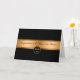 Lyxigt gratulationskort för fastighet med simulerad metallisk husemblem och designelement på framsidan och orden "Gratulerar till ditt nya hem" som du kan anpassa och göra till ditt eget. Utformat för att skicka gratulationer till dina fastighetsklienter för teman relaterade till fastighetsmäklare, byråer eller mäklare som värdesätter sina kunder.
