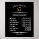 fastighetsmäklare skylt för öppettider i butik