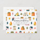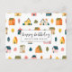 Önska glad födelsedag med detta färgglada vykort med husmönster!