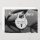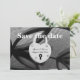 Hjärtformsspärr på stängselfoto bröllop spara datum. Romantisk svartvit bakgrundsbild. Elegantens skripttypografimall med personlig namn. Fin fotografibild. Överför din egen bild som tillval. En del av matchande samlingsuppsättning med inbjudan och dekor. Perfekt för att påminna gästerna.