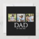 Black White Dad Established Classic Caps 3 Photo Horizontal Design. Replace the photos with your own of your kids and change the years to the years you became a dad. Classic white caps serif font. This Dad Est. Father's Day card would make a great card—especially for a new dad—or birthday, or "just because" if you CUSTOMIZE THE MESSAGE INSIDE. This is a timeless, stylish design that speaks volumes. Please message me for extra branding for souvenir cards for your dad group or church fellowship. Matching gifts available so you can create awesome giftboxes. Also in white.
