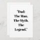 “Dad: The Man. The Myth. The Legend.” is the perfect gift for Father’s Day, birthdays, or any day you want to honor an amazing dad. Ideal for t-shirts, mugs, and greeting cards