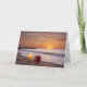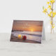 A Father’s Day card for a dad spending the day apart from his son, filled with warm memories and caring thoughts, adorned with a rose and a memorial candle resting softly on a serene beach.
