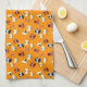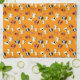 fåtöljer och bord utspridda på en klar orange kökshandduk