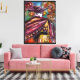 En kraftig och uttrycklig contemporary-akrylmålning på målarduk i lila guld gult färg inspirerades av Goethes Faust av Bulgan Lumini (c).