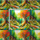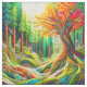 Faux 3D Embroiderade Modern Art Forest Landscape med levande färgad träd med höst löv och fet färg i golv.