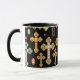 Lägg till ett litet kristendomen till frukost bord eller skrivbordet med mugg dekorerat med färgat faux födelsestensköld guld kor och lös, omonterad gems på svart bakgrund. + WYSIWYG + OBS! All inslag i det här objektet är platt, tvådimensionell och utskriven! Inga egentliga stenar eller metall används i produktionen. + Image Kredit: Ädelstenarna har extraherats från två antika vykort: 1) Lucky Horseshoe Birthstone-serien, som ursprungligen publicerades av Adelbert Kohn, Philadelphia, Pennsylvania, 1907, och 2) Gem Birthday-serien ("star"), som ursprungligen publicerades av Art Manufacturing Company, Amelia, Ohio, 190 1915. Båda vykortsserierna kommer från formgivarens privata insamling. + Pärlerna är licensierade från Shiny Pearl 2-paketet av Lary Cao.