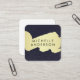Faux Blue Leather/Guld Brushed Fyrkantigt Visitkort