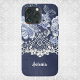 Det här vackra fodral har ett simulerat mörk blått sammet och ljusblått och vitt faux snöre. Den här antika tittar-konstruktionen kompenserar det raka linjerna i telefonfodralet, ge fodral ett feminin-utseende i vintage. Observera att bilden bara är tryckt på och att det inte finns någon egentlig broderistruktur eller texturerad struktur. VIKTIGT: Skriv ditt namn i rutan Personlig.