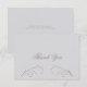 En faux-embossad skiss av några fåtal ömtåliga stammar av liljor från dalen dekorerar denna lilja från dalen, blommigt-temat, modern klassisk bröllop-tack för att du har en enkel men sofistikerad kortdesign, tidslängd och elegant. Observera att präglingen skapas genom en bild och att ingen verklig prägling visas på kortet. Detta moderna klassiska faux-kort som präglas av bröllop är perfekt för par som föredrar det formella traditionella bröllop-stationeriet och som kärlek den präglade effekten, blommigten, liljet av dalen i synnerhet och den klassiska bröllop-kalligrafin.