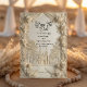 Announce your formal estate wedding with timeless elegance. This vintage-inspired design captures the romance of European architecture in a luxury cream palette. Experience the grandeur of an old-world celebration through this intricate illustration. The design centers on a symmetrical view of a majestic cathedral featuring twin spires, accessible via a tree-lined garden pathway. The central scene is framed by elaborate, digitally sculpted scrollwork and blooming rose clusters that simulate the appearance of chiseled stone or plaster relief. The typography blends flowing, elegant handwriting for names with classic serif fonts for details, all rendered in soft shades of warm beige, tan, and ivory for a sophisticated monochromatic look.