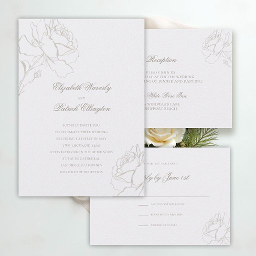 Faux Embossed Roses Pearl Modern Classic Wedding Inbjudningar