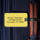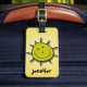 Ett lysande lycklig sol ser ut som ett broderat plåster med ditt namn nedanför mot en ljusstark gult. På baksidan finns anpassade för ytterligare identifiering.