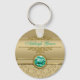 Faux Emerald Gemstone Metallic Shiny Guld Damask Nyckelring