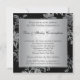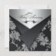 Denna klassiska svarta och silverfärgade blommiga brokadutseende 25-års bröllopsjubileums inbjudan har svarta flikar som är UTRYCKTA för att se ut som om de är öppna. Den har en dekorativ svart rulle på framsidan, tillsammans med eleganta ord som säger "25-års bröllopsjubileum". Du kan ta bort dem om du vill lägga till din egen text. Den skulle se särskilt elegant ut på det metalliska ispapperet. Inbjudan är helt anpassningsbar. Om du behöver några matchande produkter, vänligen maila niteowlstudio@gmail.com med din förfrågan.