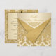 Denna eleganta och sofistikerade taupe- och gulddamaskbrokadmönster med TRYCKT PÅ öppna glitteriga guldförklappar 15-års bröllopsjubileums inbjudan har en utsmyckad guldrulle på framsidan och en formell svart takkrona i en balssal på baksidan. Det skulle göra ett klassiskt uttalande för paret som firar 15 års äktenskap. Jag föreslår metalliskt is- eller champagnepapper, krämfilt eller vanligt papper. Om du behöver några matchande föremål, vänligen mejla din förfrågan till niteowlstudio@gmail.com.