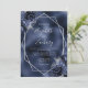 Denna eleganta moderna bröllopsinbjudan har en silver geometrisk ram dekorerad med marinblå och silverblommiga buketter på en marinblå falsk folie bakgrund. Den anpassningsbara texten kombinerar silvergrå fantasifull handskrift, kopparplåt och kursiv stil. Baksidan är enfärgat marinblå.