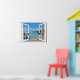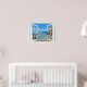 Avslöjande strand- och havsvy, falska fönsterscen, för en fönsterlös kontorsvägg. Roligt, realistiskt optisk illusionsscenk poster för ett kontor eller en studiekur.