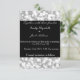 En bröllopsinbjudan som innehåller en svart bakgrund med faux glamours silver inspirerad design med silver text.