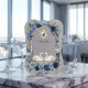 Faux Gold Crest & Watercolor Blue Swans Tack Kort