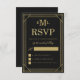 Chic faux guld foil art deco bröllop OSA card. Elegant bröllop OSA kort har faux guld art deco gräns, mörk grått bakgrund och bröllop monogram. Ändra teckensnittet stil genom att klicka på knappen "Anpassa".