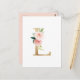 Elegant och vismiskt vykort brev L monogram. Den har vattenfärgade blommor, grönaktiga och faux-guld-folie.