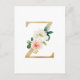 Faux Gold Foil Brev Z Blommigt Monogram Vykort